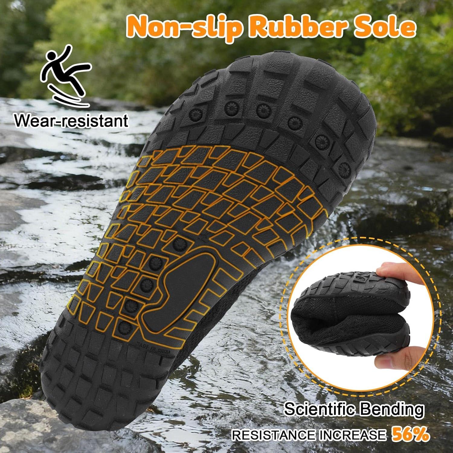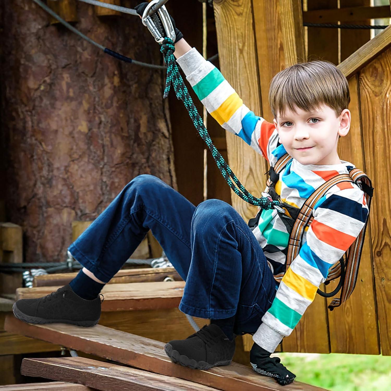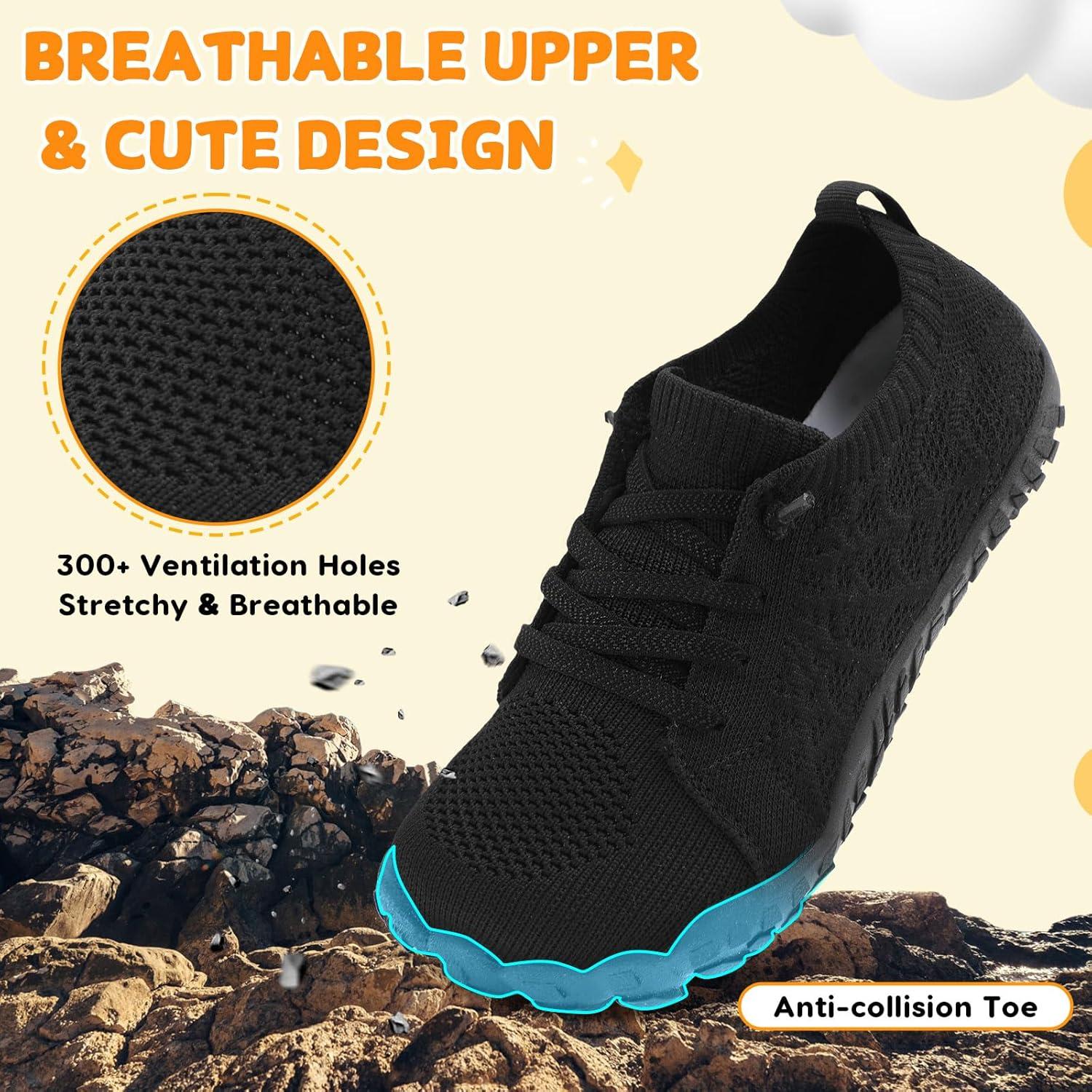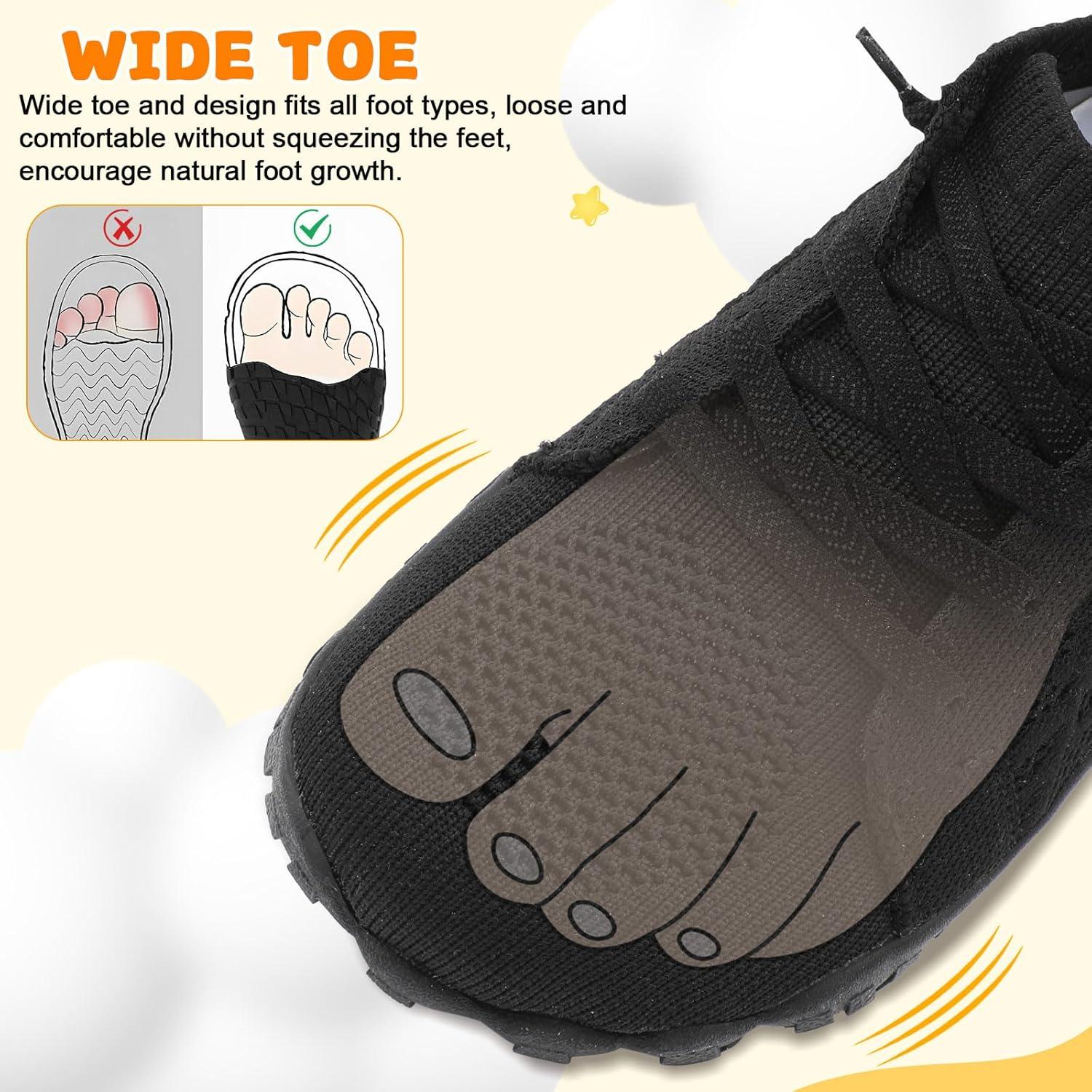 JOINFREE Kids Barefoot Shoes Boys Girls Wide Slip On Shoes Big Kids Breathable Hiking Sneakers Zero Drop Toddler Lightweight Walking Tennis Shoe Indoor Outdoor(Black)