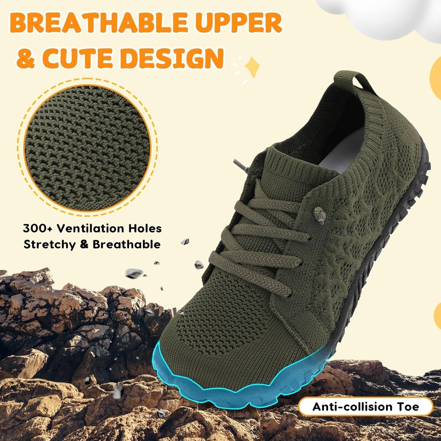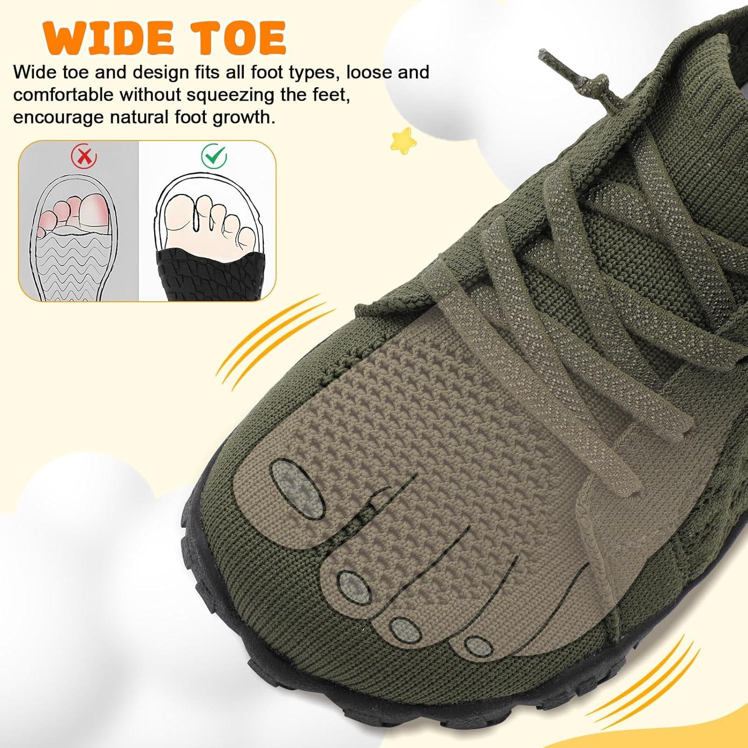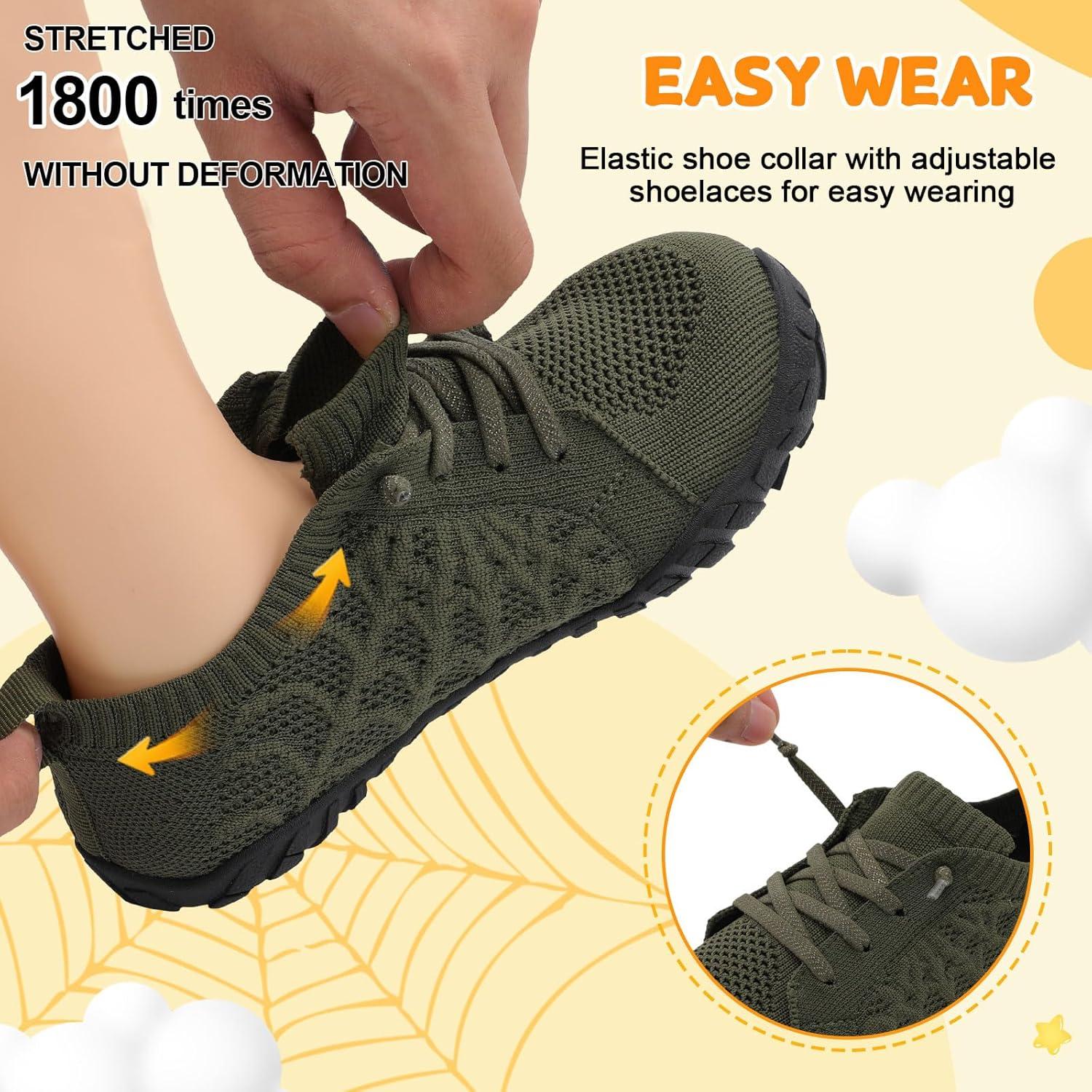 JOINFREE Kids Barefoot Shoes Boys Girls Wide Slip On Shoes Big Kids Breathable Hiking Sneakers Zero Drop Toddler Lightweight Walking Tennis Shoe Indoor Outdoor(Darkgreen)